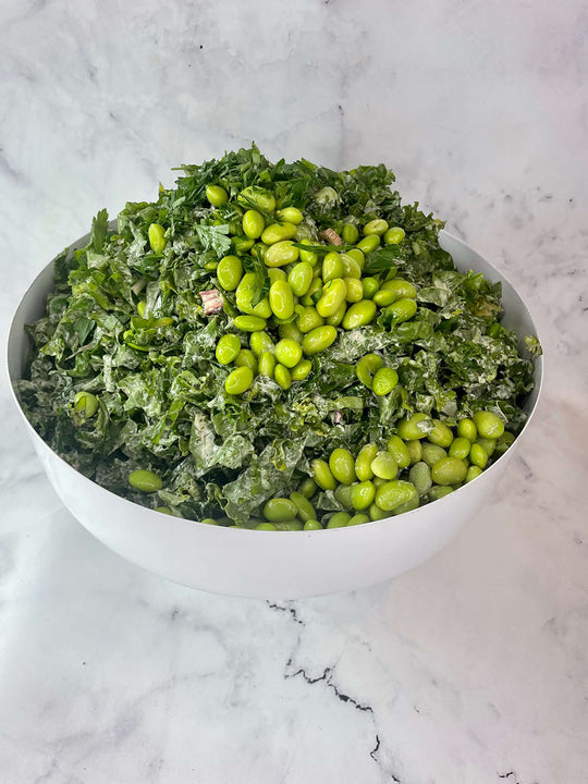 Fresh Cabbage Slaw with Mixed Herbs, Peas, Chilli and Parmesan salad